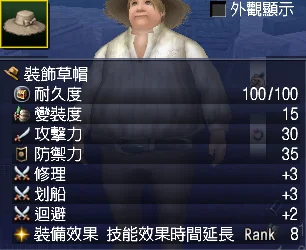 ~ 熊貓帽子(划船+2,操帆+2,管理+2,物資減少抑制r7) ~ 106nt