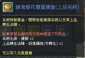 鍾山之神雙喜寶盒(上品名將)=300元