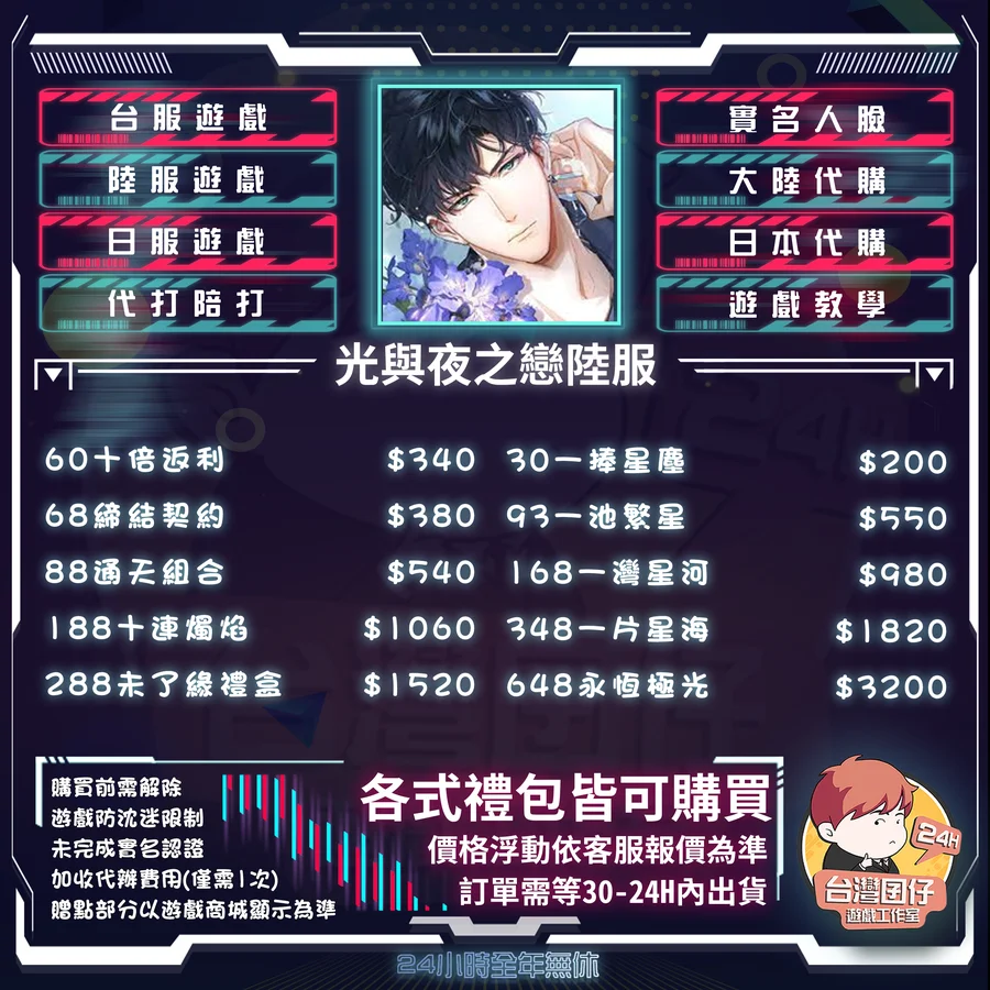 【68締結契約】🏆24H客服🏆現貨秒出🔥台灣囝仔🔥光與夜之戀陸服🔥實名認證❤️人臉辨識