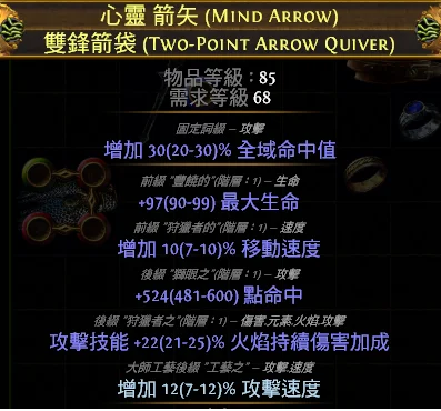 爆炸箭畢業箭袋 4T1 生命/命中/跑速/火焰持續加成 大師攻速