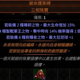請點此賣場→(看守之眼)(貨幣、通貨)(星團珠寶)(客製金裝詞)(油瓶配置)(催化劑)(單手武)(6洞6鏈結裝備)(頭盔)(手套)(鞋子)(奧爾的崛起)(珠寶)(腰帶)(附魔相關)(贗品.地圖)(護身符)(永恆珠寶)傳奇-命運束縛.三相珠寶( 所有詞綴都有賣.歡迎詢問 )請朋友您先透過 提問 或 即時通訊並指定需要的命運束縛詞綴~立即報價再另開專屬賣場給您下標付款立即將此珠寶 親自發貨給朋友您【 開放複製級 】遺產.絕版護身符、雙咒+極增傷戒指、物轉元傷戒指、癱瘓衣、猛攻鞋、冥河腰帶、召喚頭、弓箭袋