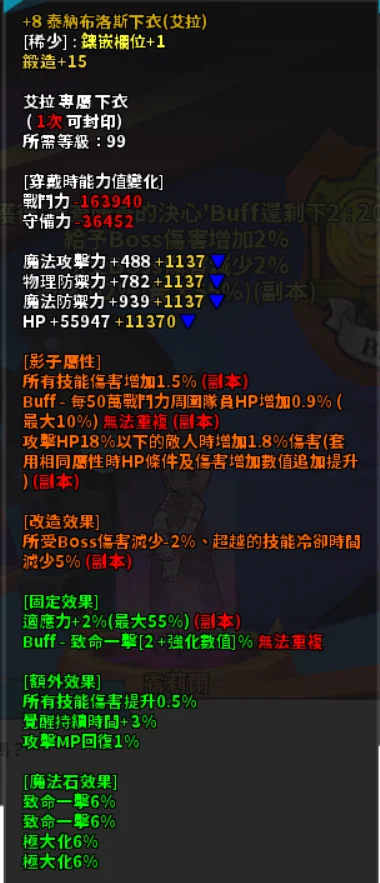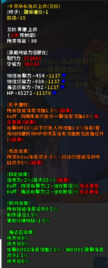 上衣 1.2技傷 頂團爆 16血殺 (+8鍛15)500