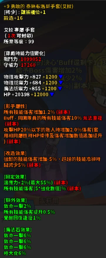 手套 1.2爆傷 頂團技 頂血殺(+9鍛16) 1000