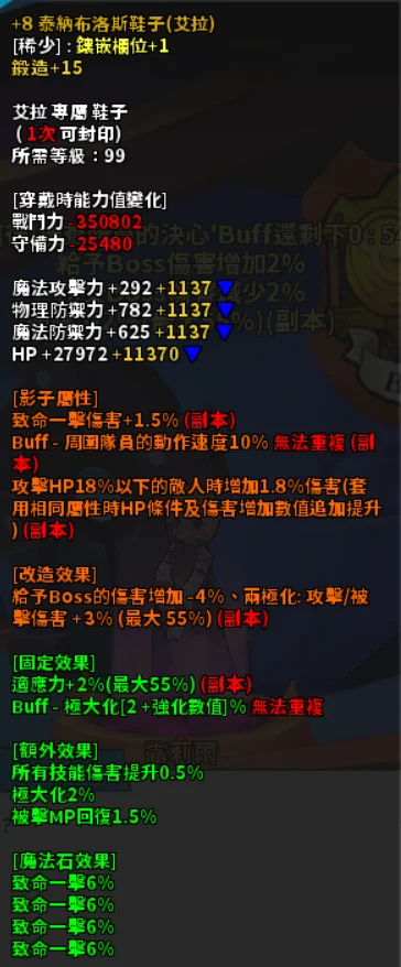 鞋子 1.5爆傷 頂團速 18血殺(+8鍛15) 500