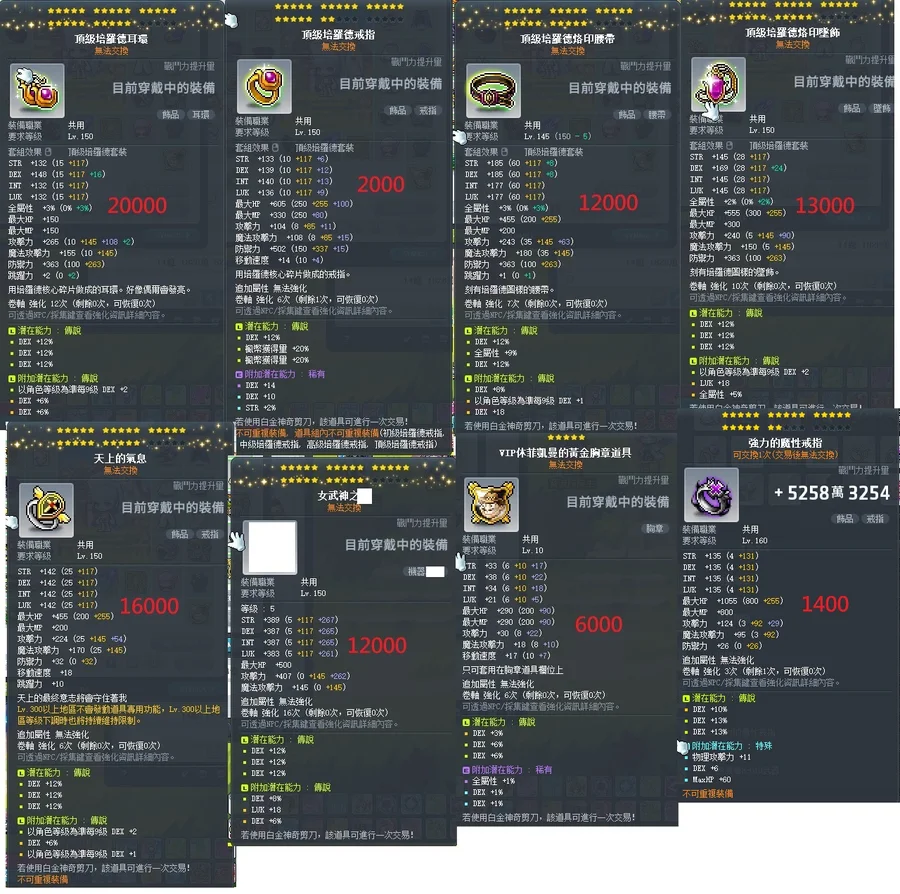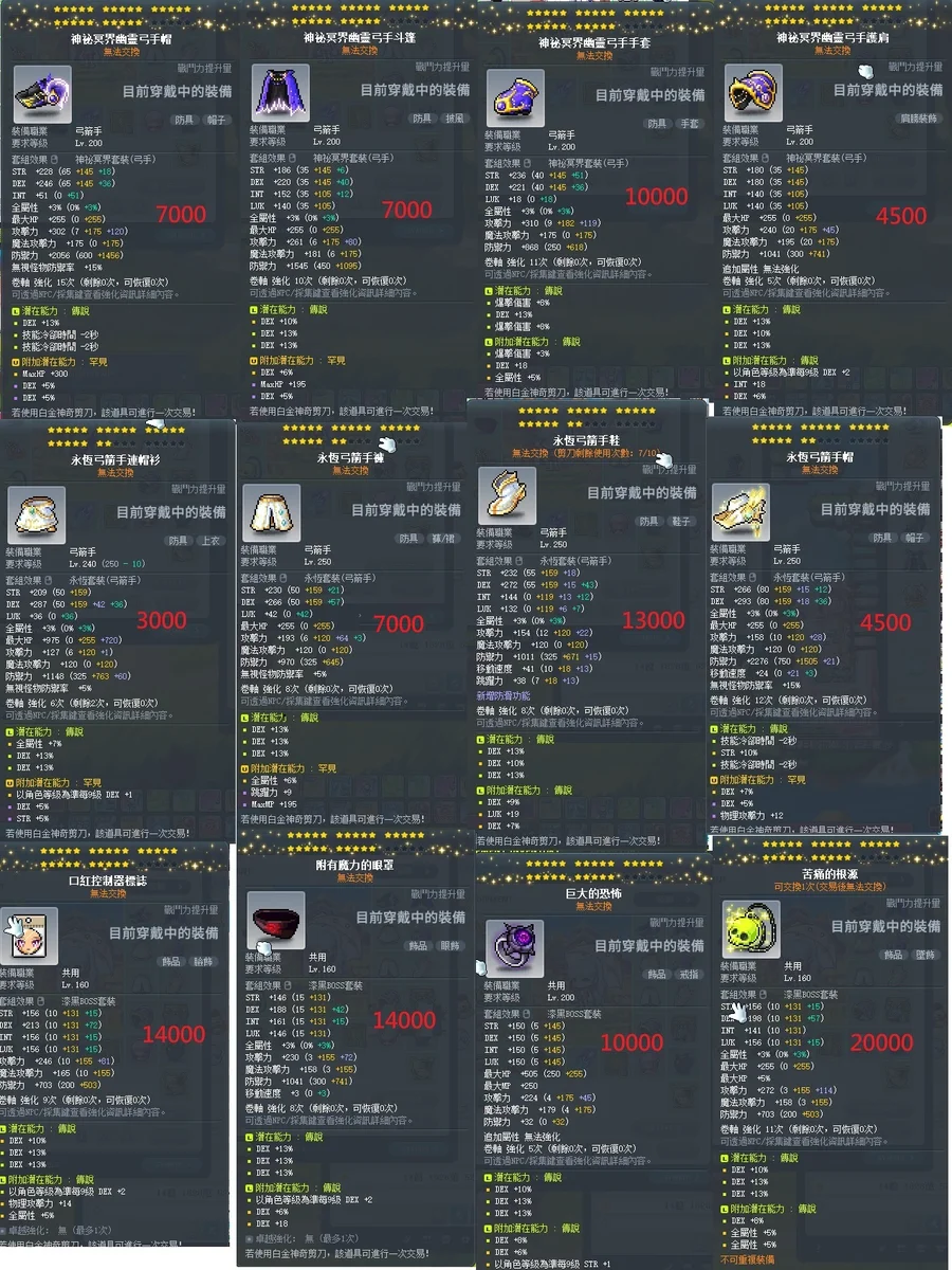 25星 -4CD13敏附加罕見雙排星火36+3%全V白3神祕弓手帽=$12000