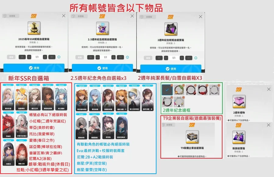 ^✨含40000鑽石+高級招募券x2+企業T9裝自選箱x1(遊戲最強裝備)+自選SSR箱x1(可選露姬,完整輔助開局)