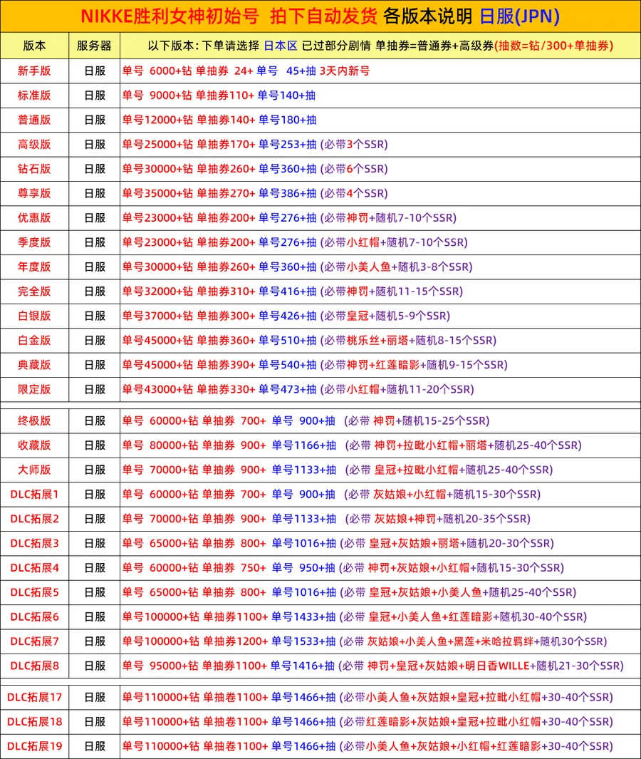 全 8591 勝利女神:妮姬初始號港台服自選組合開局號資源石頭自選自抽號