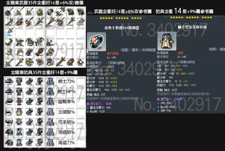 佩沙里洛防具7套9%職業屬+烏特卡勒德武器35把(依職業為6% 魔/物攻/總傷)優惠1280T