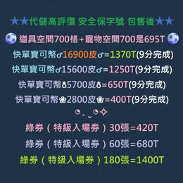 (合買)道具700格+寵物700格=695T(需要時間作業)