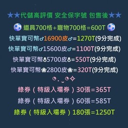 (合買)道具700格+寵物700格=600T(需要時間作業)