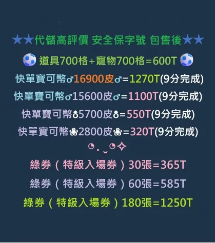 (單買)道具700格=350T(需要時間作業)