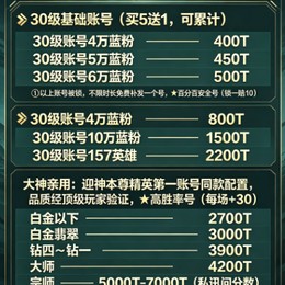 30級賬號4萬藍粉 400T 以下買5送1(可累計)