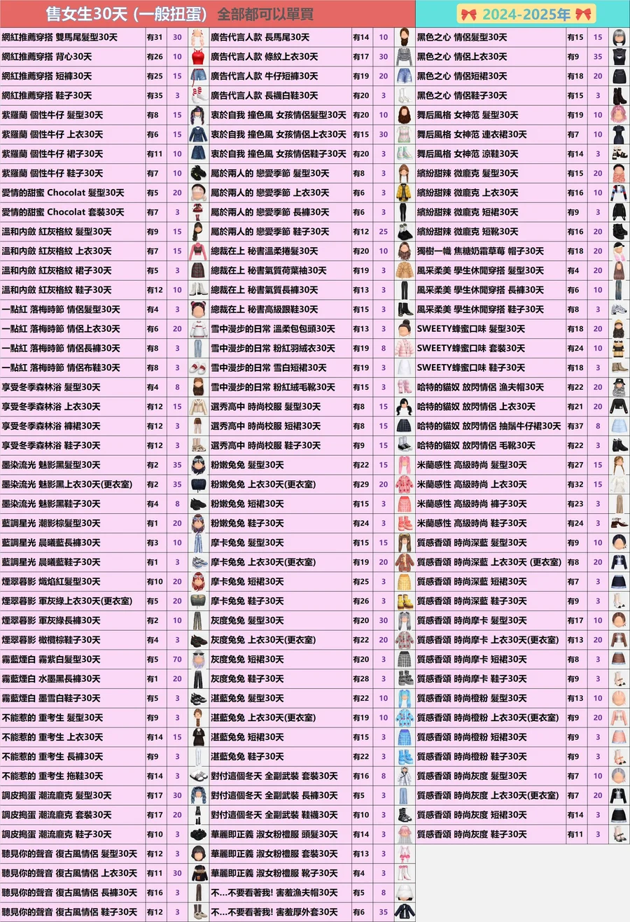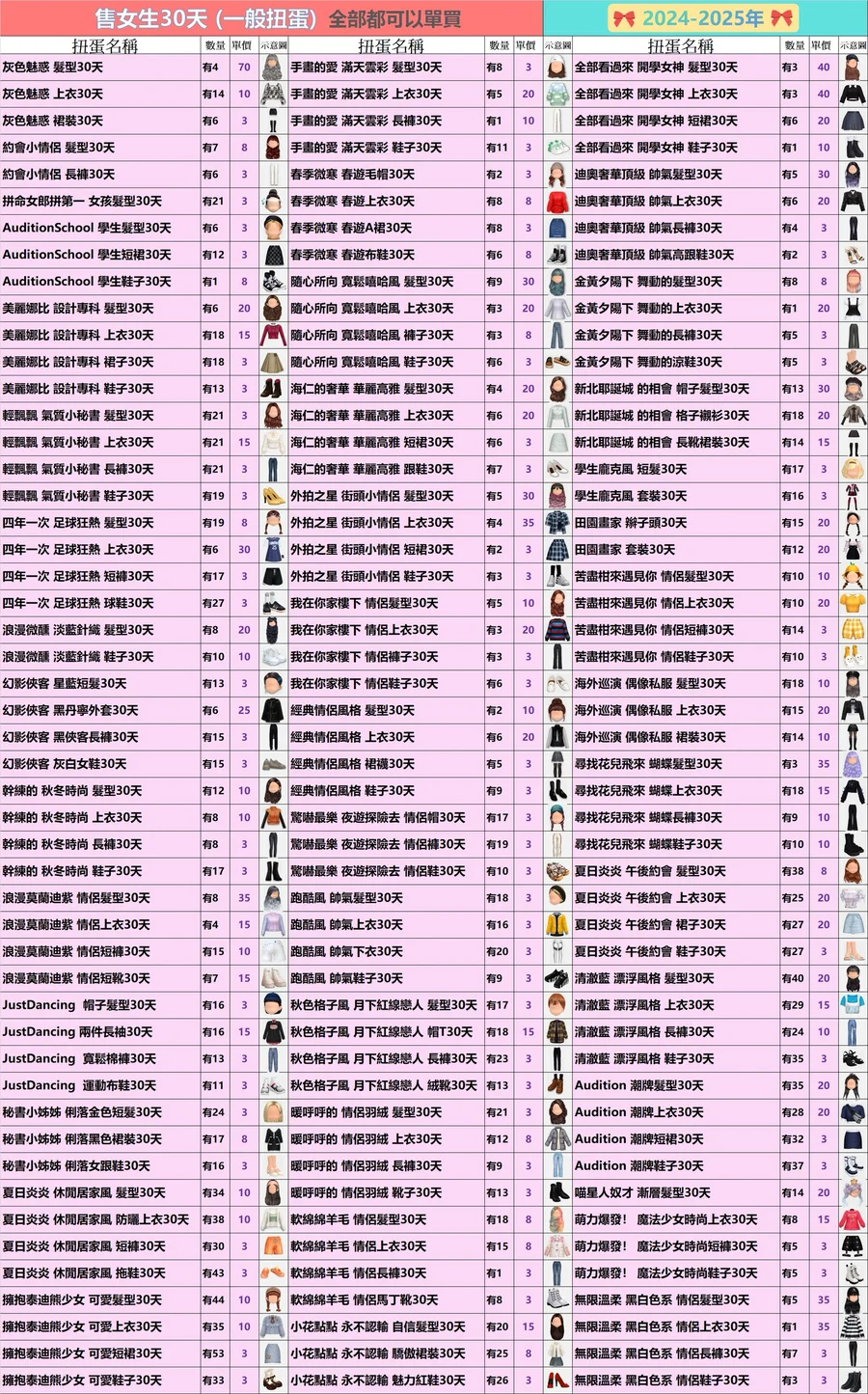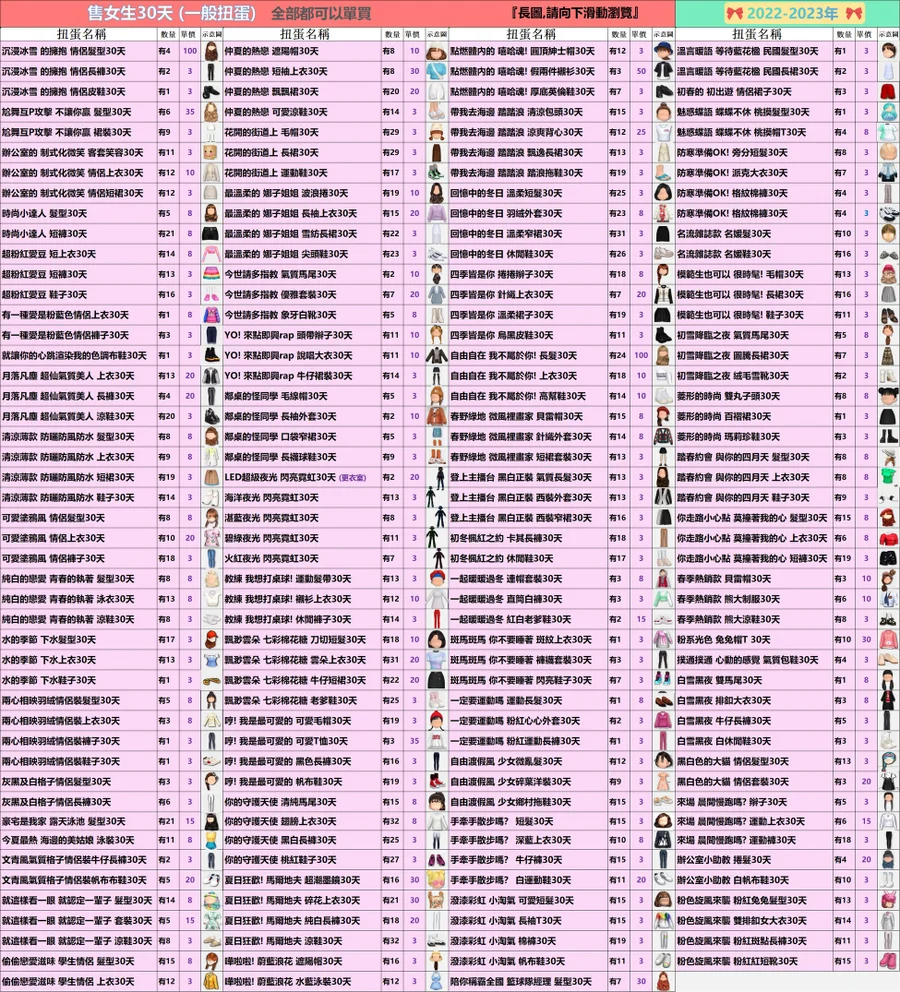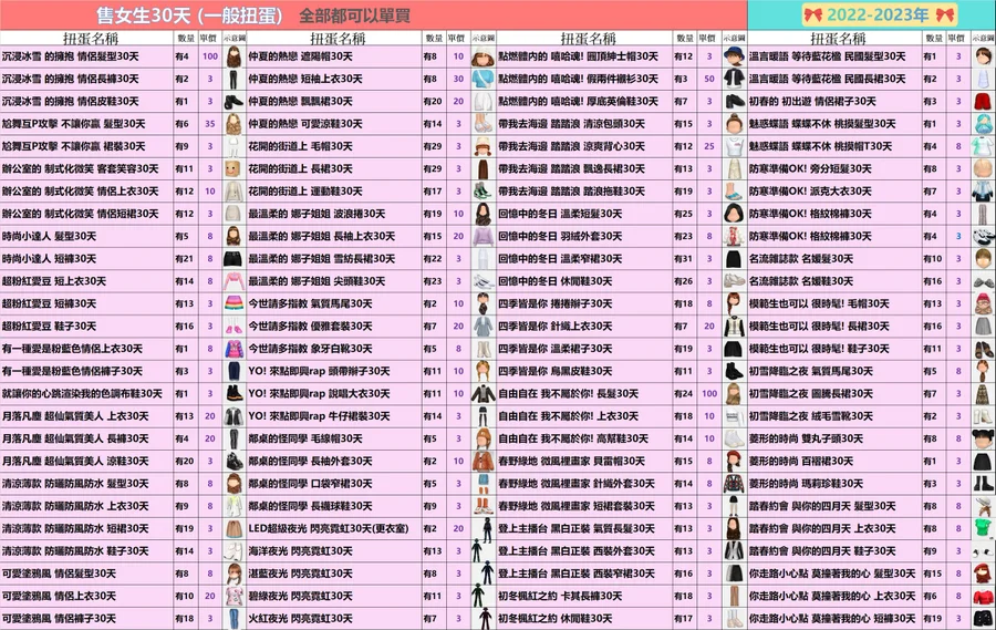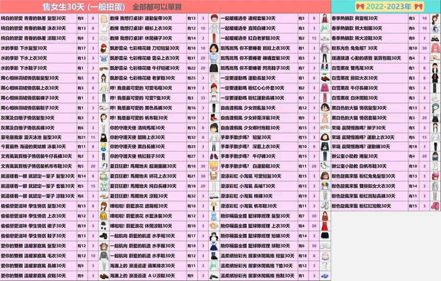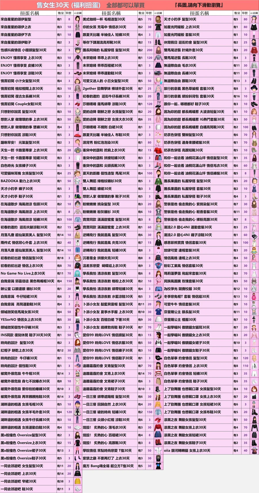 女生的30天扭蛋✿全部3元起(期間女)