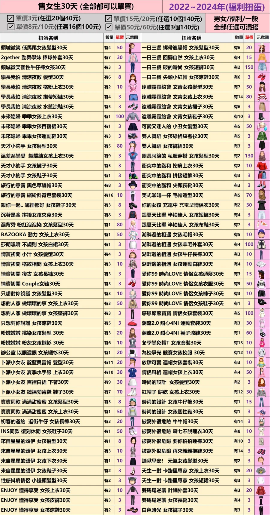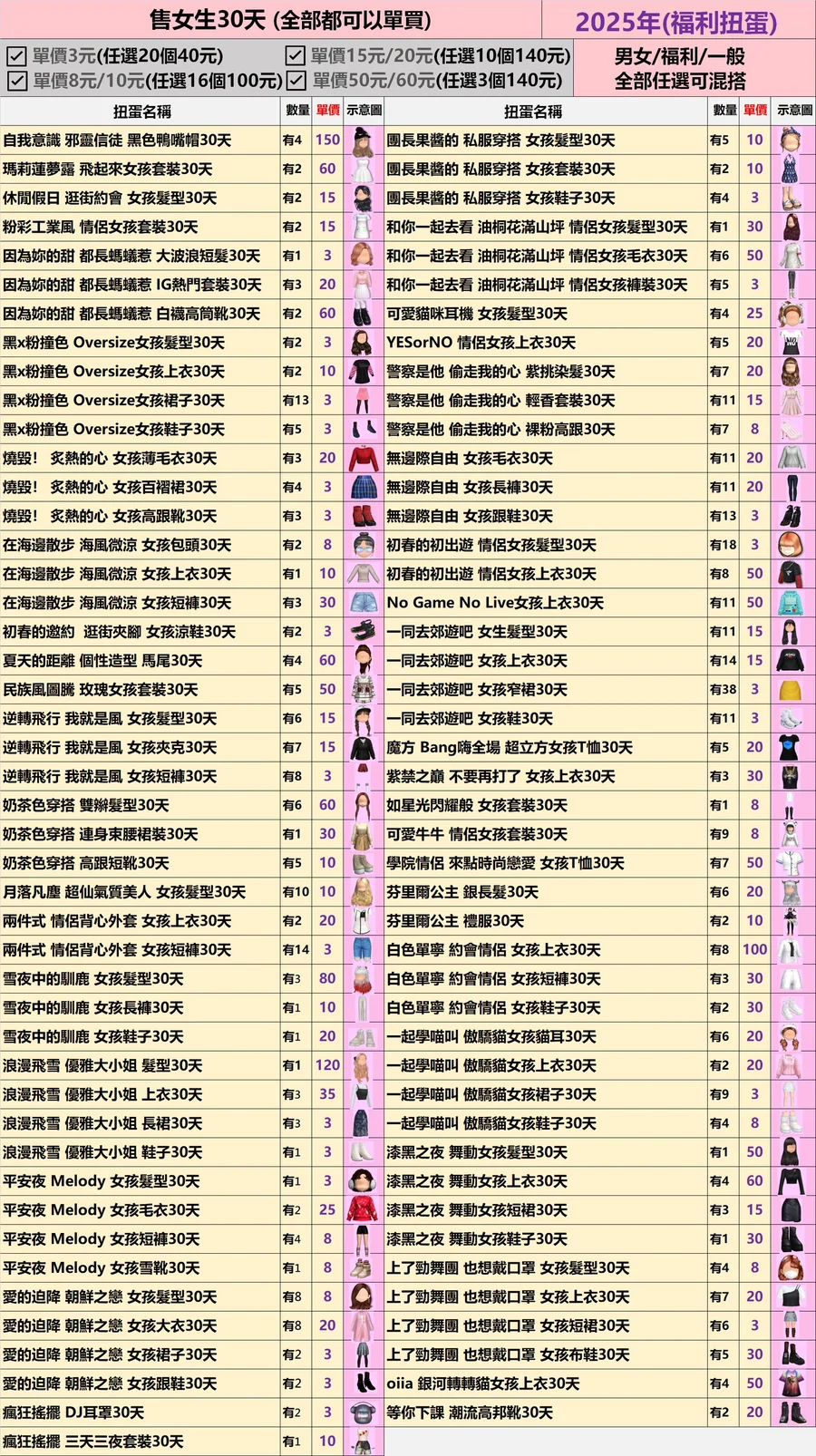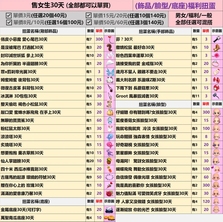 女生的福利&一般30天扭蛋✿全部3元起(期限)