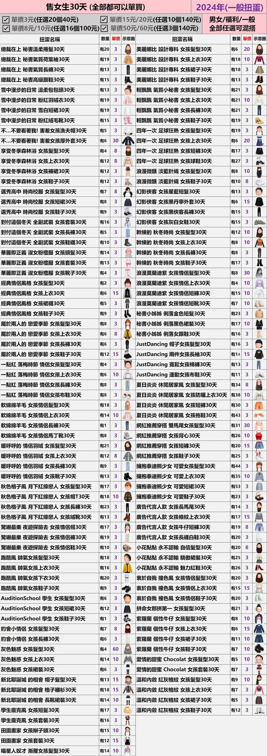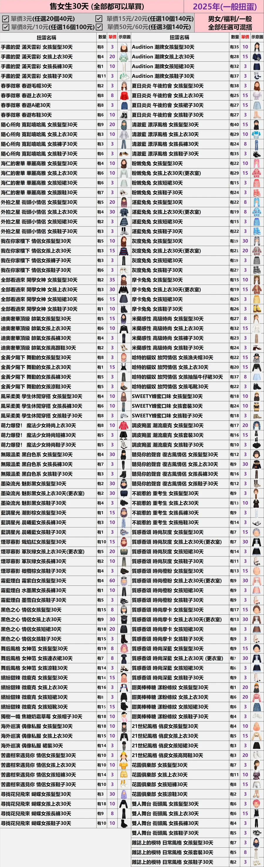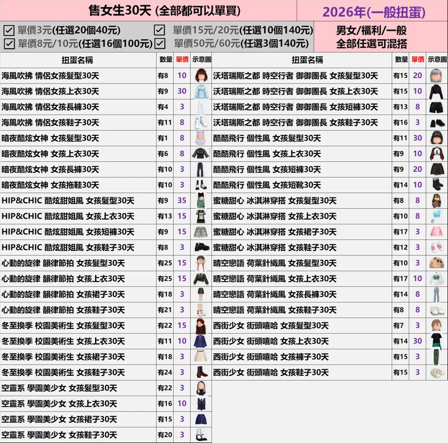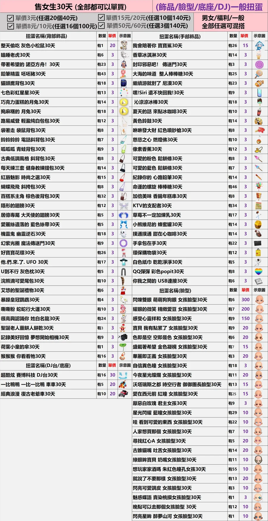 女生的福利&一般30天扭蛋✿全部3元起(期限)