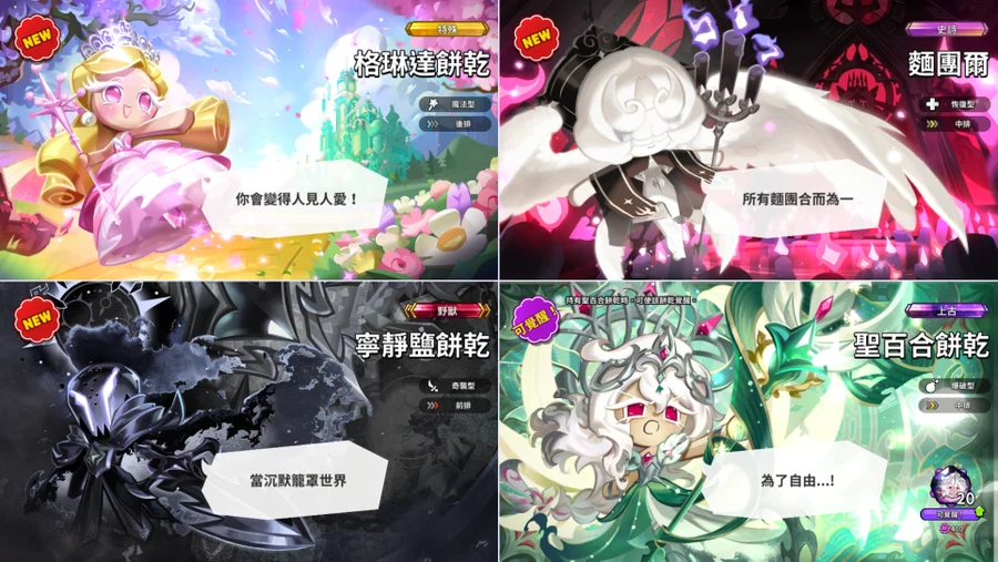 | 800 | R13 | 30萬以上 | 13萬以上 | 格琳達 黑影牛奶 火精靈 幻彩麵粉 覺醒純香草 妖精王 辣椒素 月光魔法師 閃耀之星 雪酪 黑珍珠 黑可可 聖莓果 |