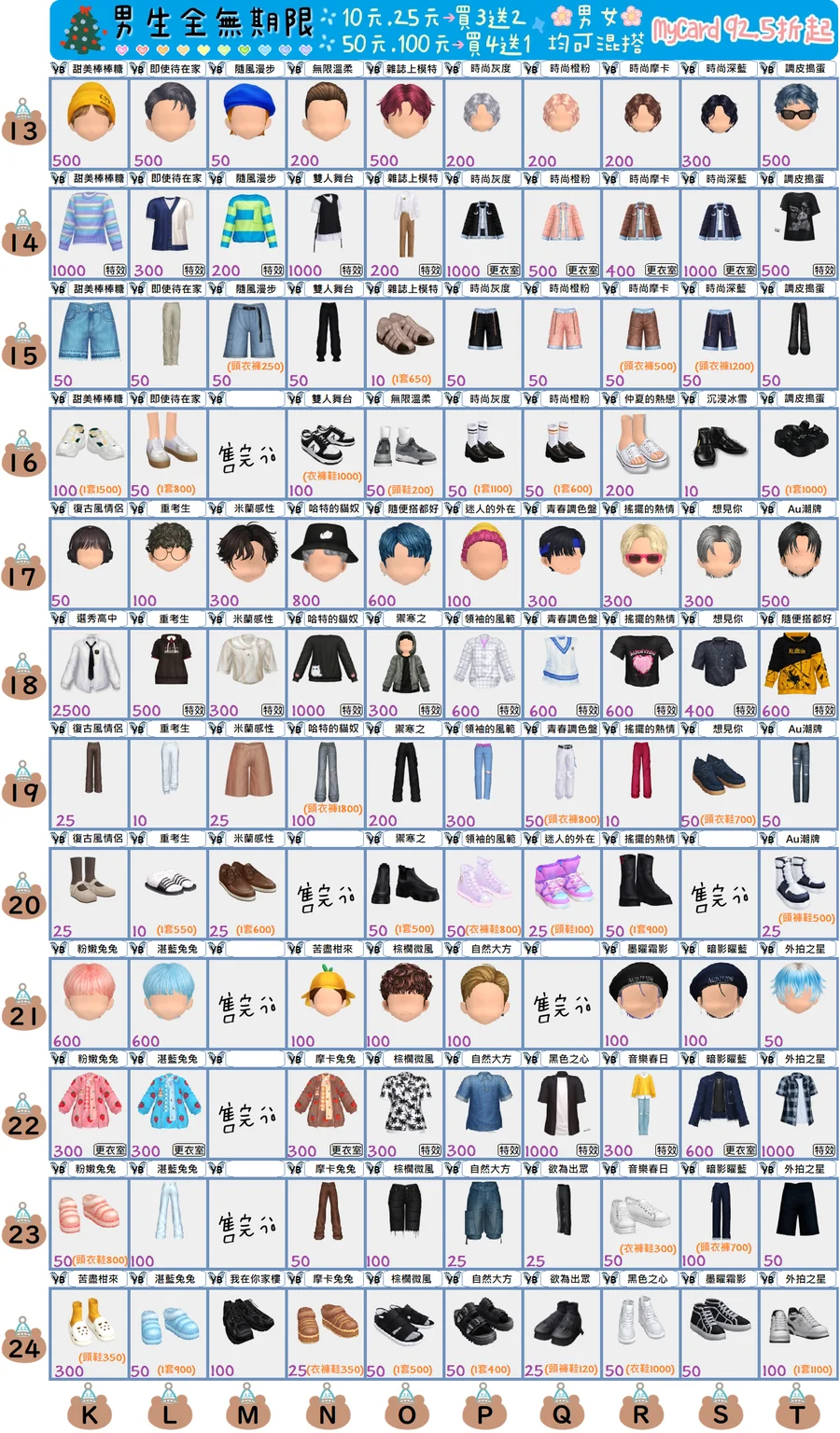 方案5.        男生3套+飾品﹩2500