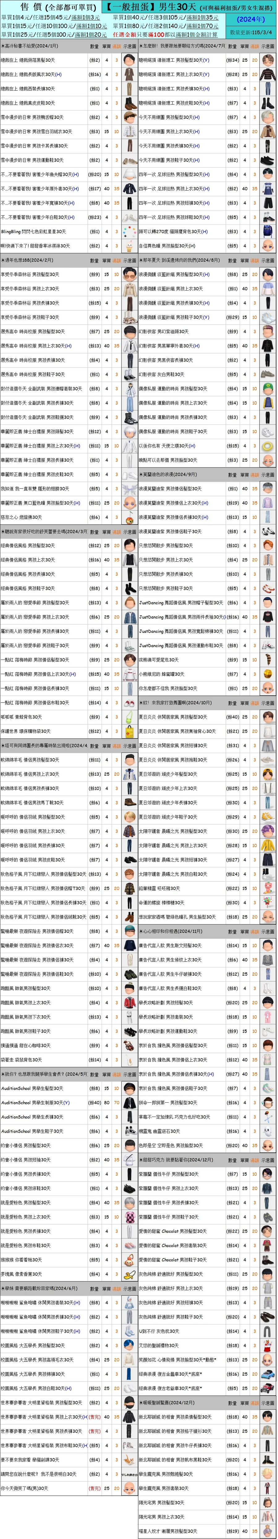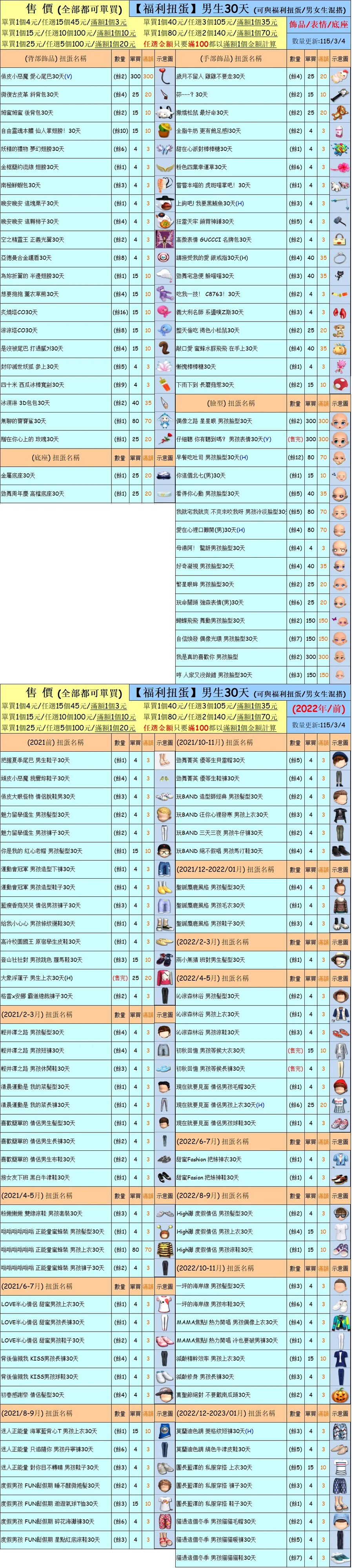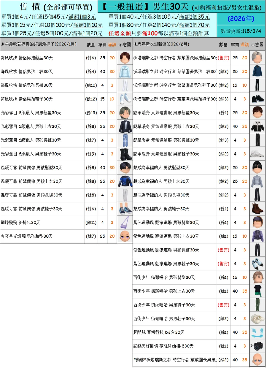 出清 [男生一般扭蛋30天] [115/3/4更新]