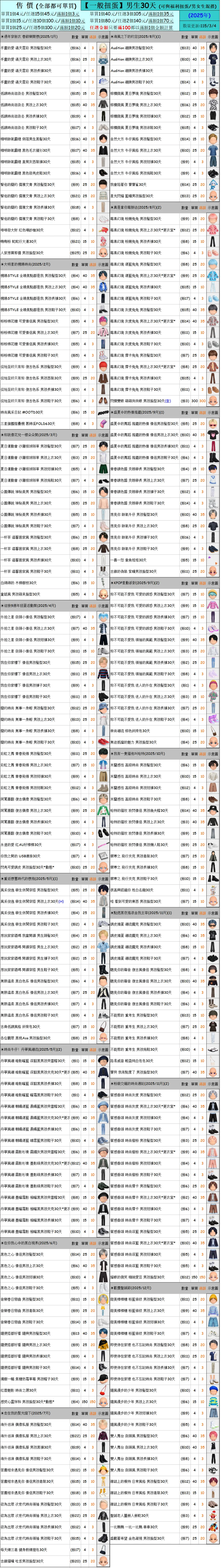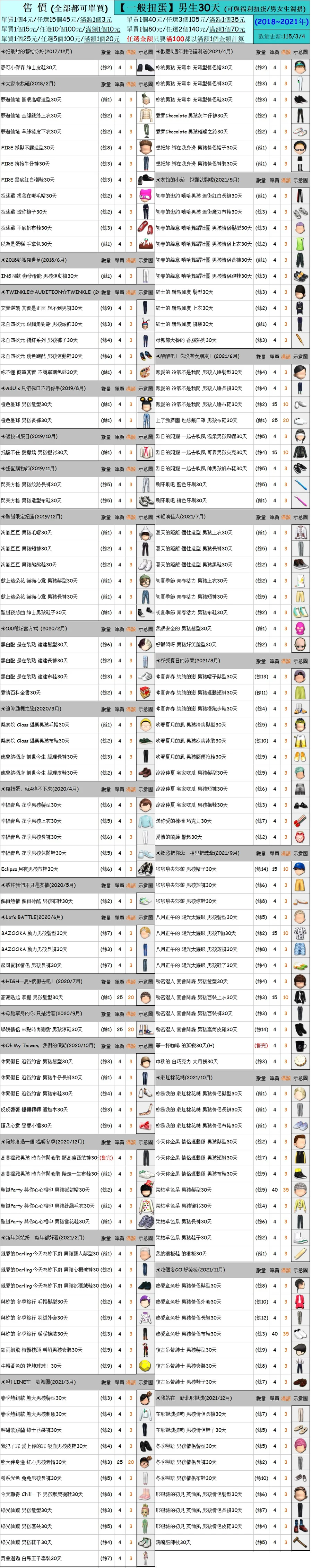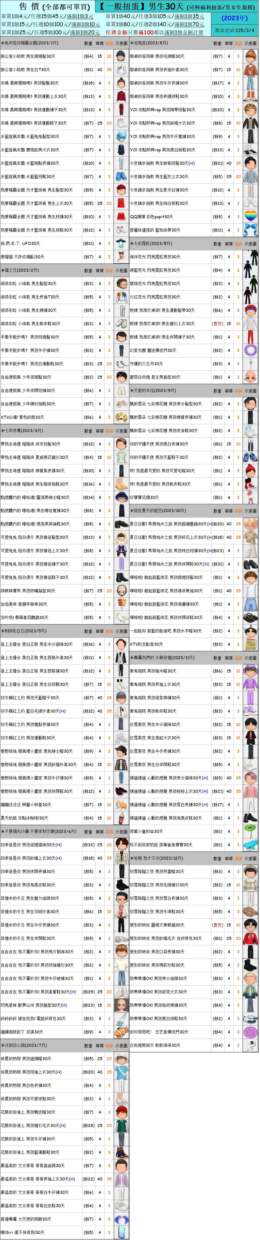 出清 [男生一般扭蛋30天] [115/3/4更新]