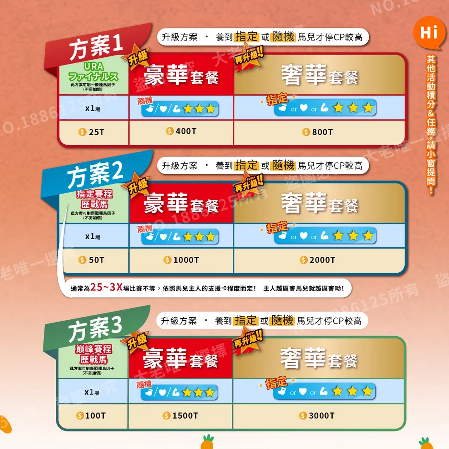 升級方案 養到"指定"or"隨機"馬兒才停CP較高