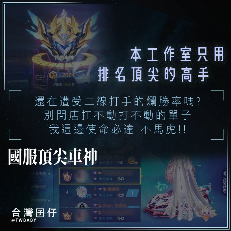 👉是真正在季初就爬上頂尖車神&最強車神的團隊,旗下作業跑者也都是台服&國服/最強車神&傳奇車神🏆