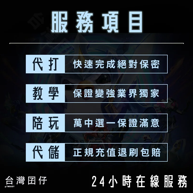 下標後,請查看交易留言板在打手登入您的帳號作業前,客服會再次與您確認帳號狀況與購買的商品品項是否正確!作業開始時間依買家需求由買家與客服人員及打手三方溝通確認後開始,作業期間依打手評估自身狀態後調整作業時間買家不得有議,代打交易完畢後請買家記得更改您的密碼,避免不必要的糾紛。代打期間請勿隨意上線為避免重複登入造成帳號封鎖,請勿登入遊戲帳號,造成IP異常需自行承擔。代打期間如發生搶登情況打手將不繼續進行當場遊戲,且由原目標排位-1場作為結單段位,如須達到原定段位須補單因搶登而導致帳號信譽/榮譽等問題 需承擔後續處理之責任需協助解除帳號中離處罰依照難易度會加收額外作業費用如代打期間使用外掛全額退款。陪玩作業開始時間依買家需求由買家與客服人員及打手三方溝通確認後開始,作業期間依買家與打手評估自身狀態後調整作業時間買家與打手不得有議。因遊戲管理規章時常更新如因違反規章而影響帳號買家需自行承擔帳號任何可能發生之風險,本工作室對於買家之帳號不負保管責任,請買家配合打手指揮,嚴禁惡意 中離 謾罵隊友等影響作業之情事發生,訂單進入移中,非我方問題,本場不同意中途消易,嚴重影響本賣場人員調度費用,請付違約金50%實際成交金額,如發生特殊情況如造成身心受損等影響遊戲正常進程之行為由客服人員作為公正第三方聽取買家與打手雙方言論後評估決策該場遊戲是否成立,買家與打手不得有議。