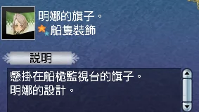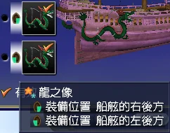 【船隻裝飾】類物品,放身上會占位子(不掉耐久),