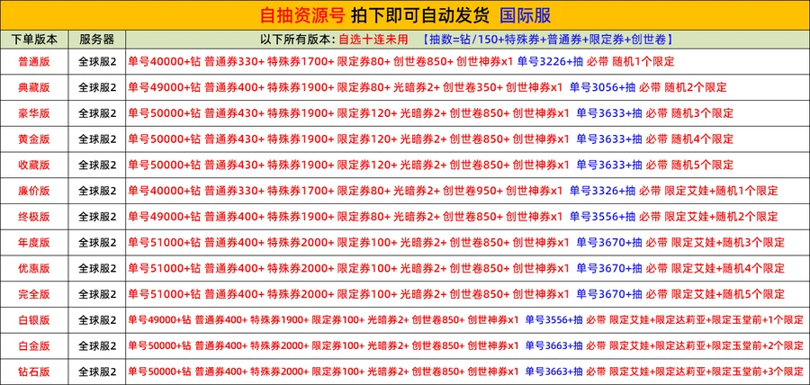 遊戲帳號內容已清楚打出來 沒打出來的皆為隨機附送 不要自己亂加東西 資源 再說帳號上怎沒有 後續出現問題 一律以賣家公布為主 介意勿買 帳號一律不幫留 專屬是方便購買 不是幫留 如果下單後 沒帳號 一律換組或不互評退款 購買表示同意 介意勿買 若需綁定個人訊息或遊玩 如手機 身分證 或是 下載遊戲 VPN 等 請自行綁定或GOOGLE 不能綁定者或無法遊玩者 無法退款 介意勿買 温馨提醒:本店杜絕修改,敬请安心購買,請杜絕修改商家,以避免導致自身錢貨兩空,關心您 下標繳費後,會在交易留言板留帳密給買家。 為避免交易糾,請務必確認賣場商品再下標,一旦購買繳費後,均不接受取消交易哦,