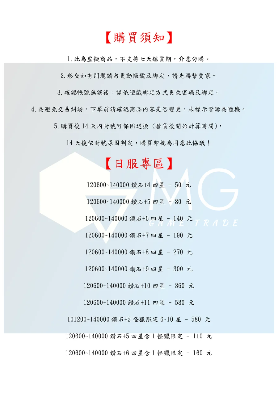 14天後依封號原因判定,購買即視為同意此協議!