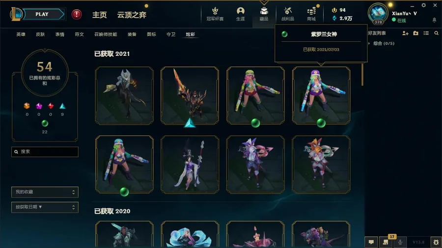 炫彩皮膚數量:54