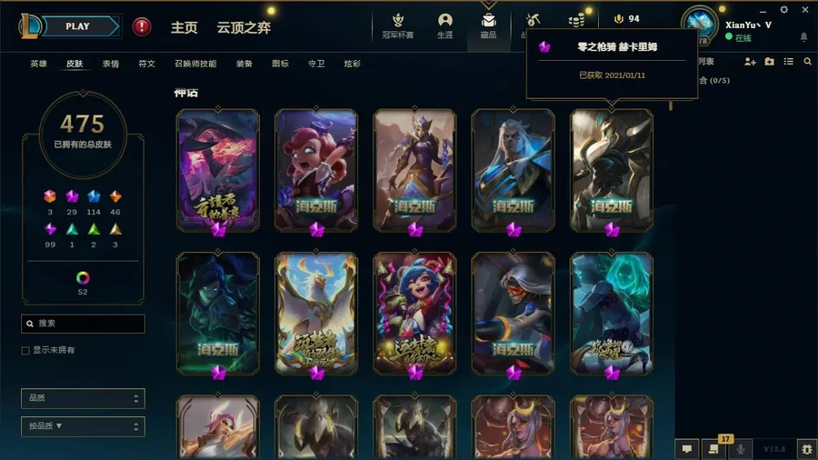 皮膚數量:475