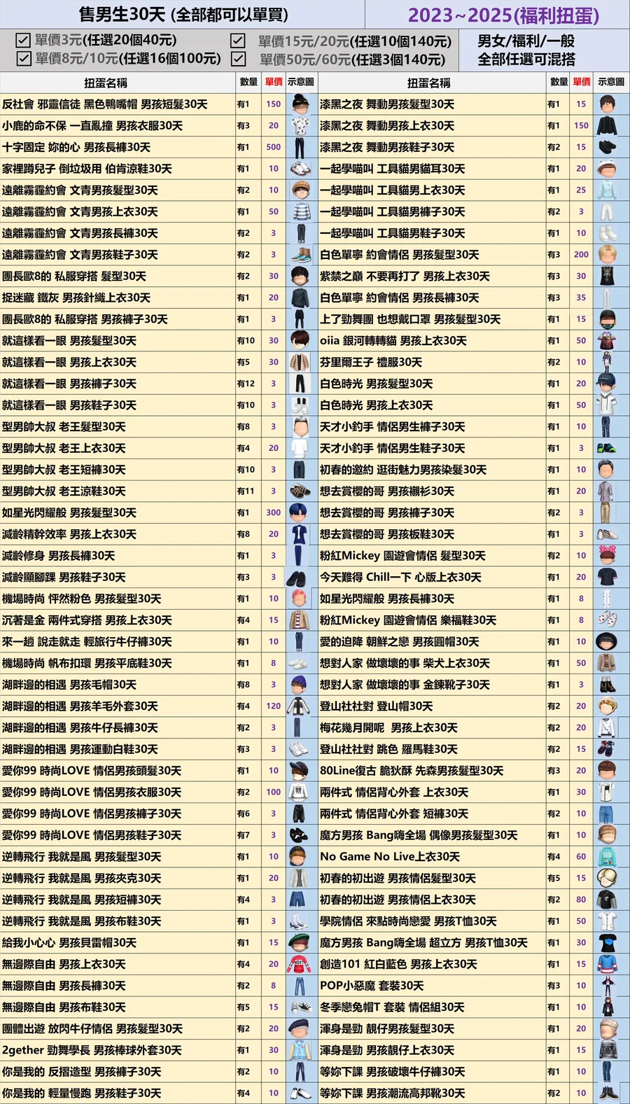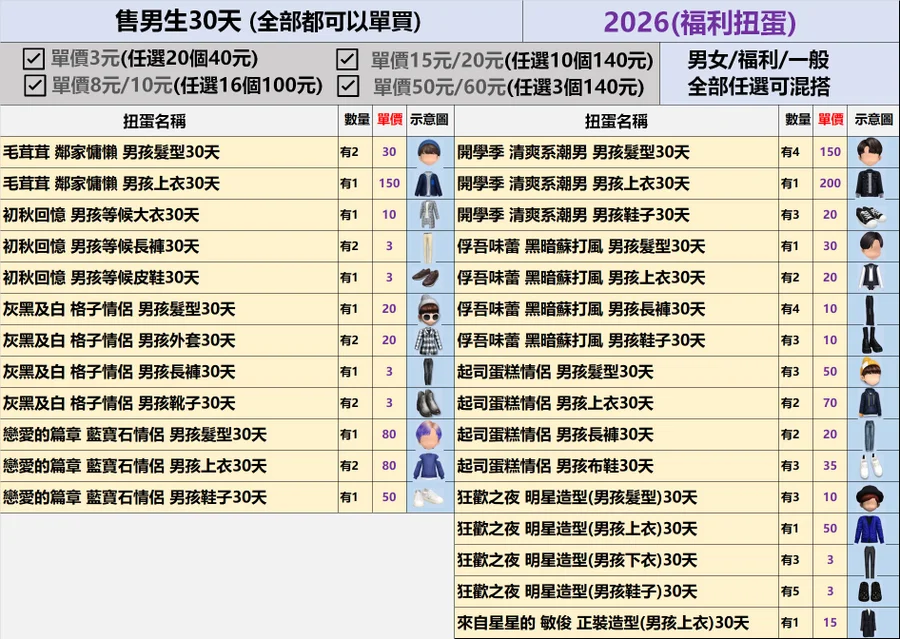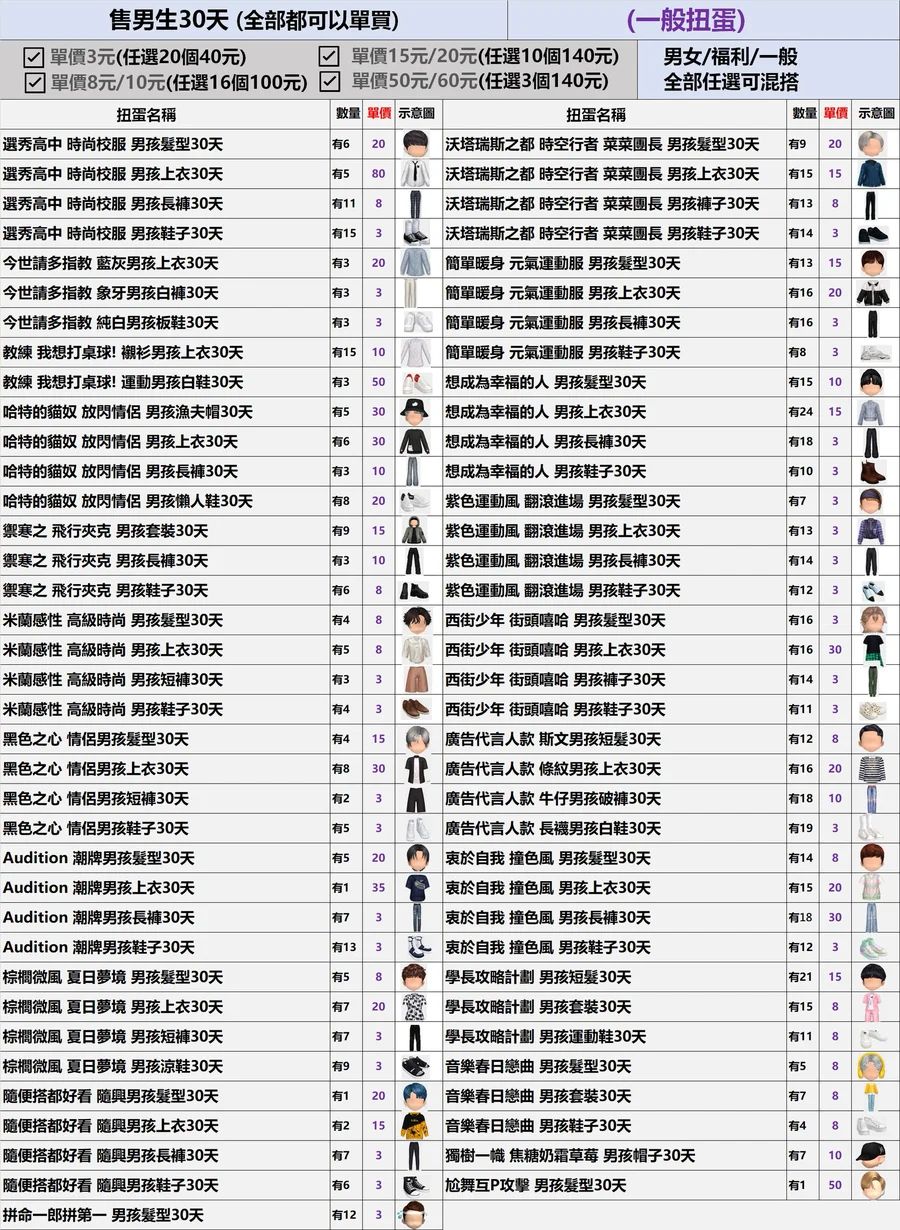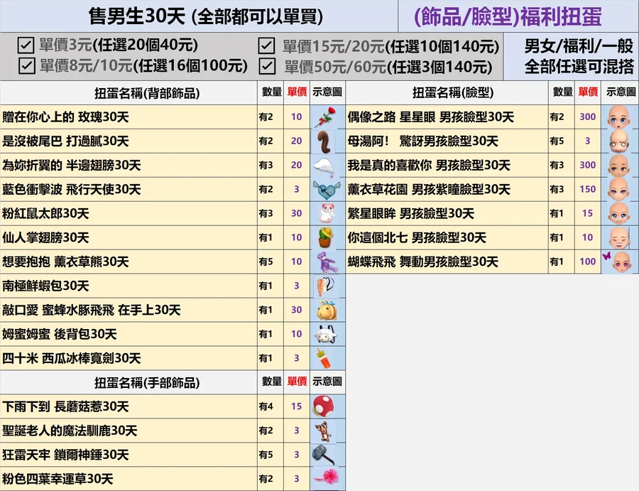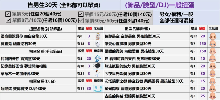 男生的福利&一般30天扭蛋✿全部3元起(期限)