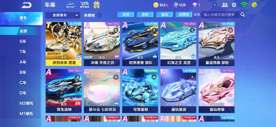 描述:秩序機甲4皮膚冰魄4皮膚時序狼隊A車多多時裝寵物多多技術不行退游了