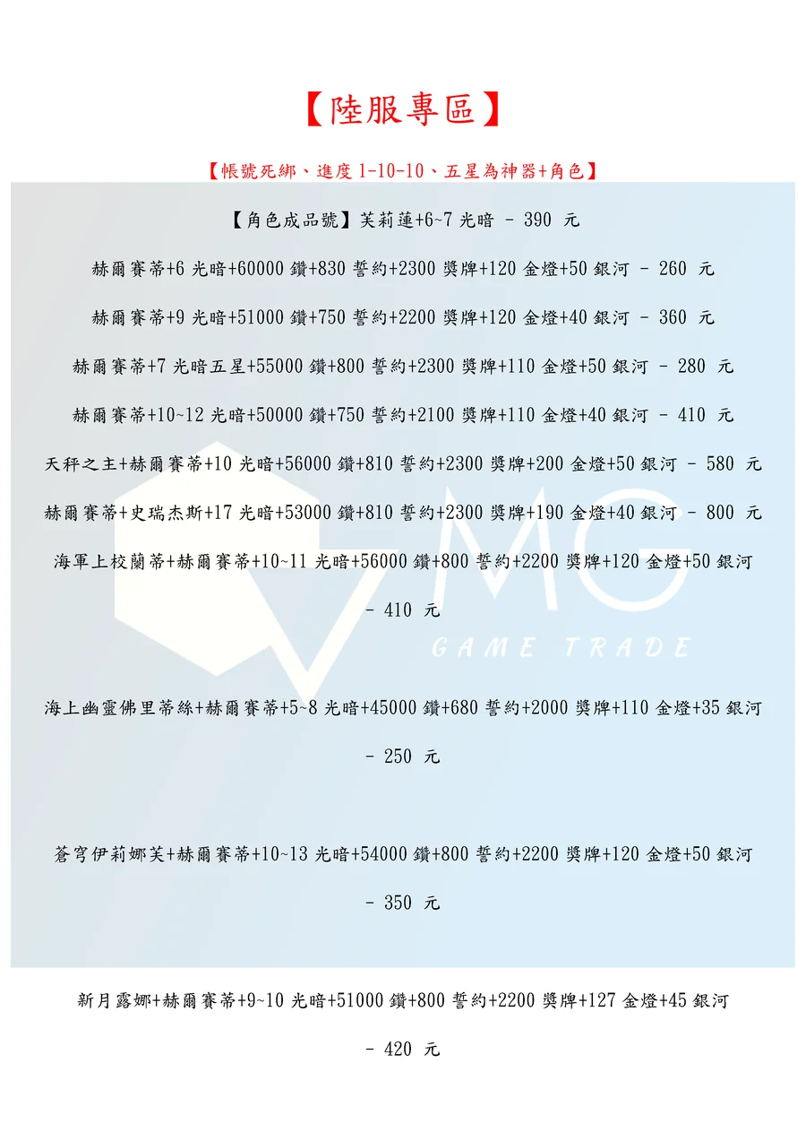 商品類型:帳號