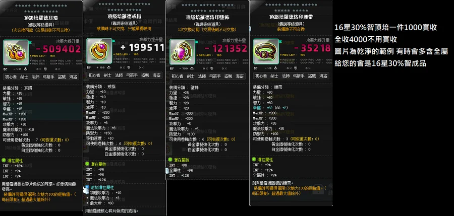 %智退谷 16星33%智大小魔/頂耳/頂戒/頂腰/頂墜 冰雷退谷/小資/陰陽