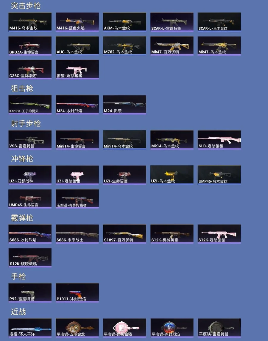 槍械皮膚:M416-五爪金龍 M416-心之戀語 M416-風花雪月 M416-暖熊萌萌