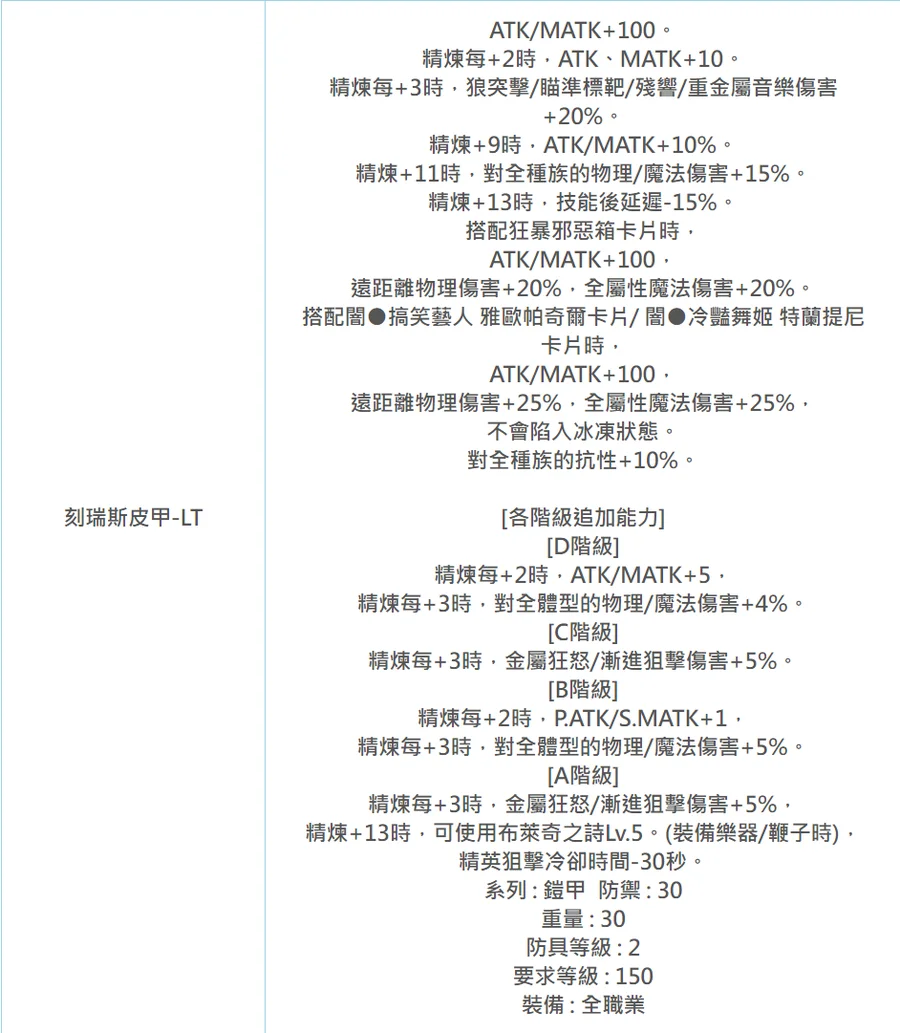可指定 +11N - +14A 刻瑞斯皮甲-LT