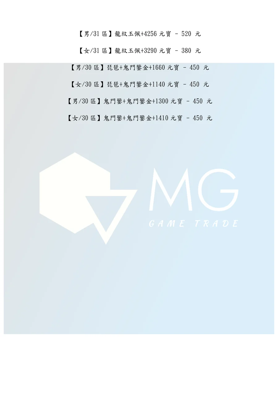 商品類型:帳號