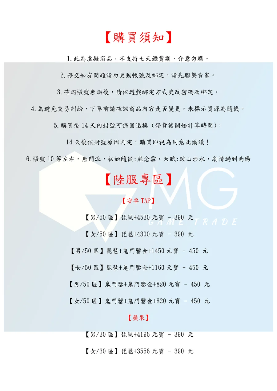 2.移交如有問題請勿更動帳號及綁定,請先聯繫賣家。