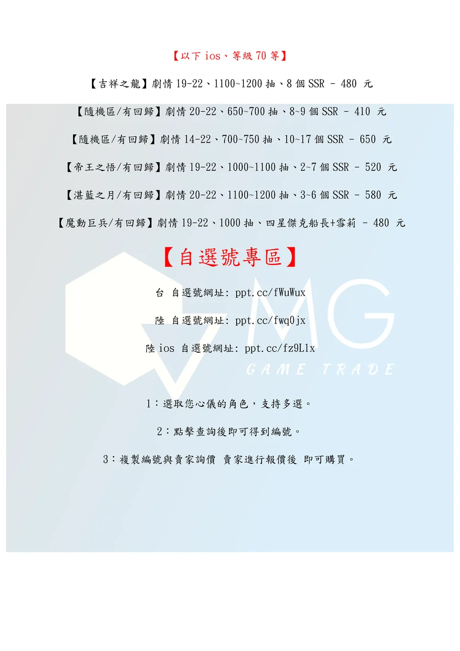 商品類型:帳號