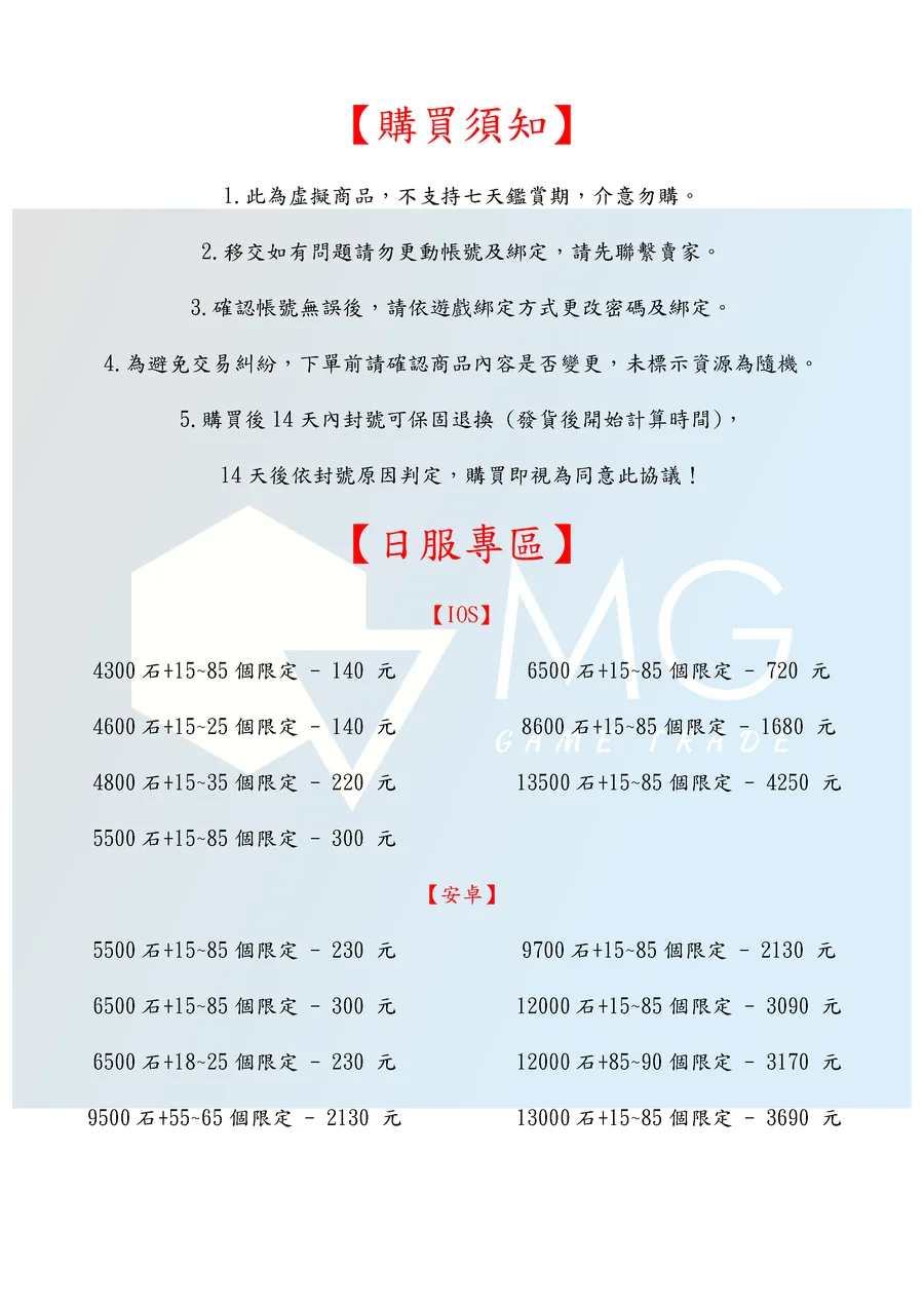 5.購買後14天內封號可保固退換 (發貨後開始計算時間),