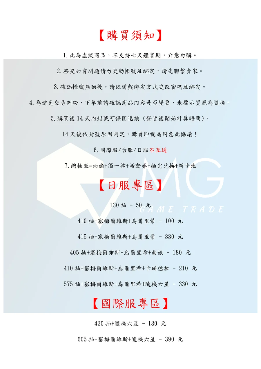 4.為避免交易糾紛,下單前請確認商品內容是否變更,未標示資源為隨機。