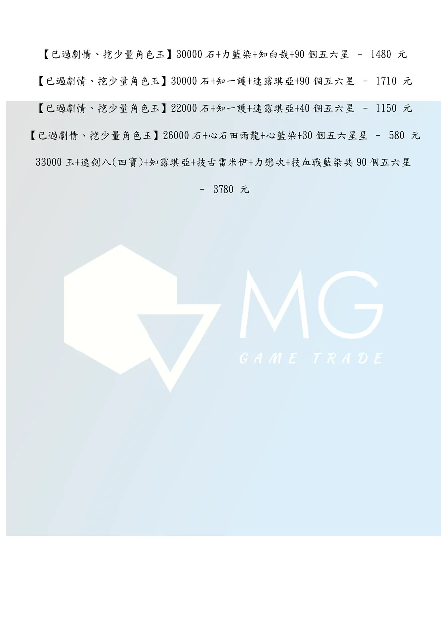 商品類型:帳號