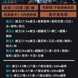 2.該帳號僅保證圖片上所標示或即時通訊討論後,所需的角色&資源,除非保證物品有缺失,否則不予退款。
