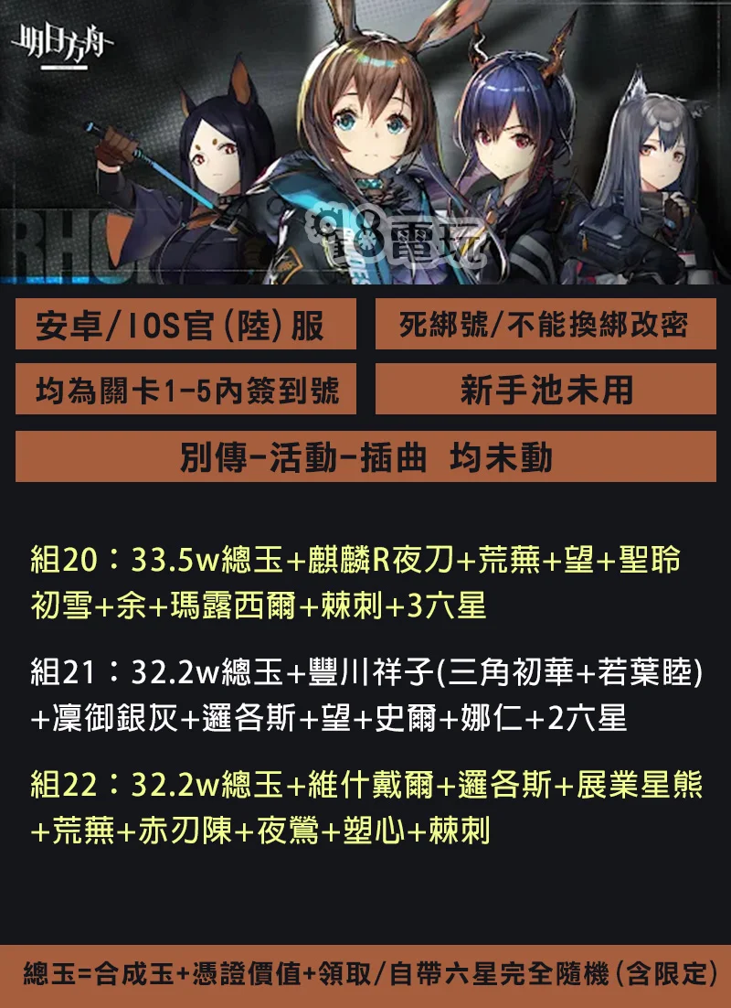 1.帳號移交前,均會檢查及截圖,收到帳號後,請立即核對角色及資源。