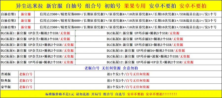 全 8591首家 異塵達米拉初始號自抽號蘋果ios0安卓開局號自選組合B站服/官服