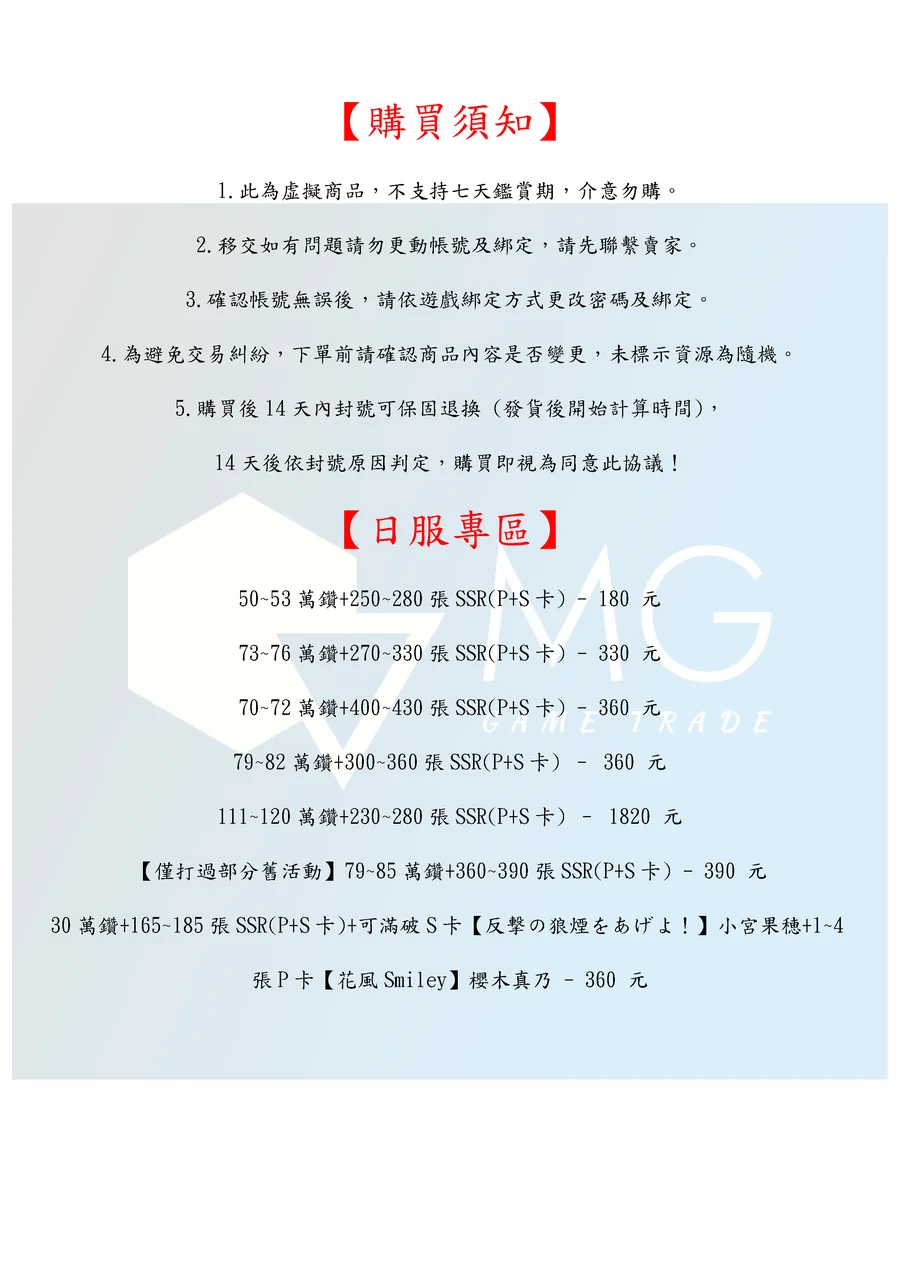 14天後依封號原因判定,購買即視為同意此協議!