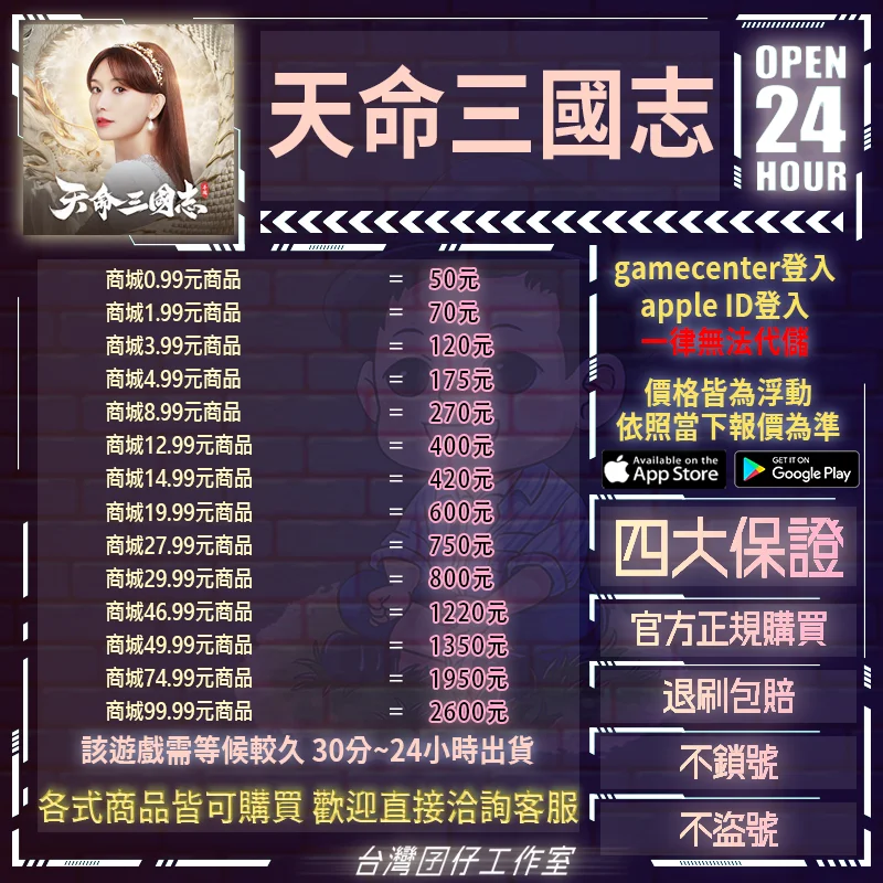 【商城49.99元商品=1350元】🏆24H客服🏆天命三國志代儲🔥現貨秒出🔥台灣囝仔🔥退刷包賠🔥