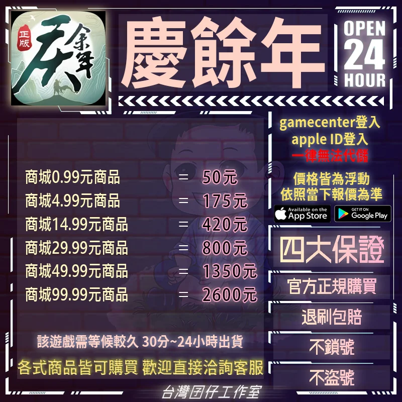 【商城14.99元商品=420元】🏆24H客服🏆慶餘年台服代儲🔥現貨秒出🔥台灣囝仔🔥退刷包賠🔥