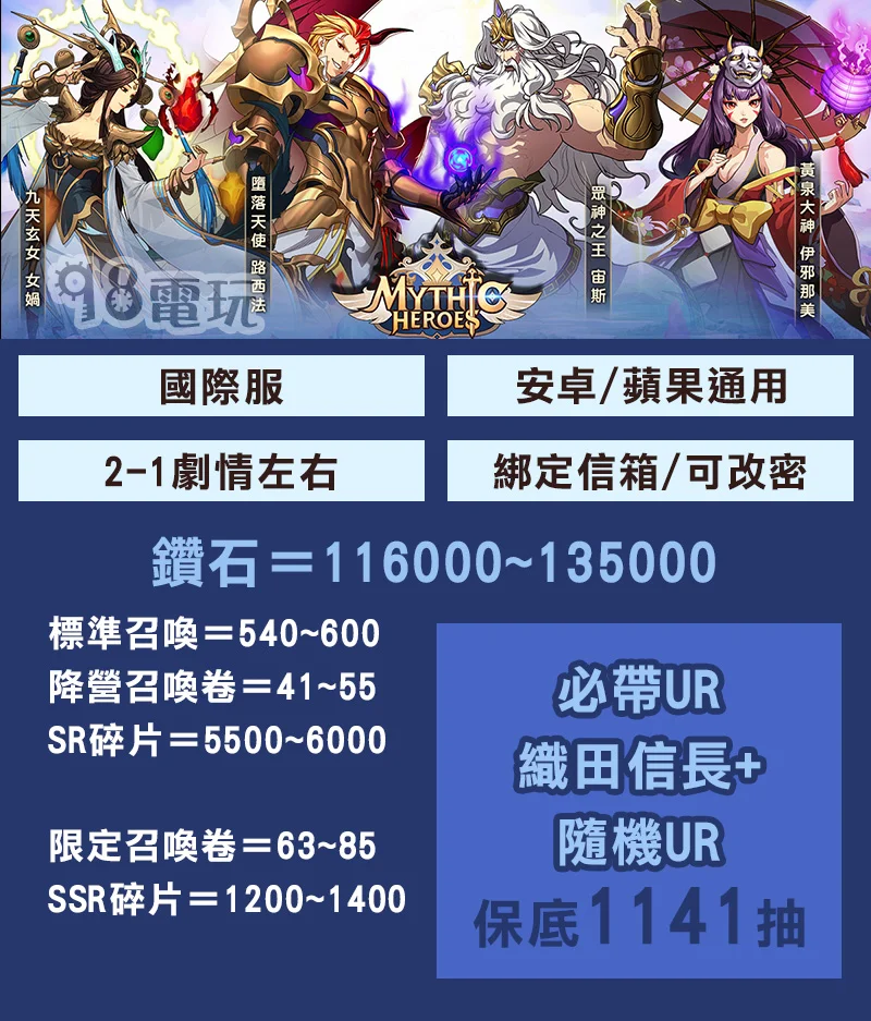 【初始號】🌟116000~135000鑽🌟保底1141抽🌟必帶UR織田信長+隨機UR